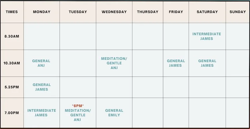 During all classes our instructors assess individuals and offer posture variations, modify poses with the use of props and suggest techniques to suit different levels of experience. If unsure of which class is suitable for you please contact us and we will happily offer our recommendations.